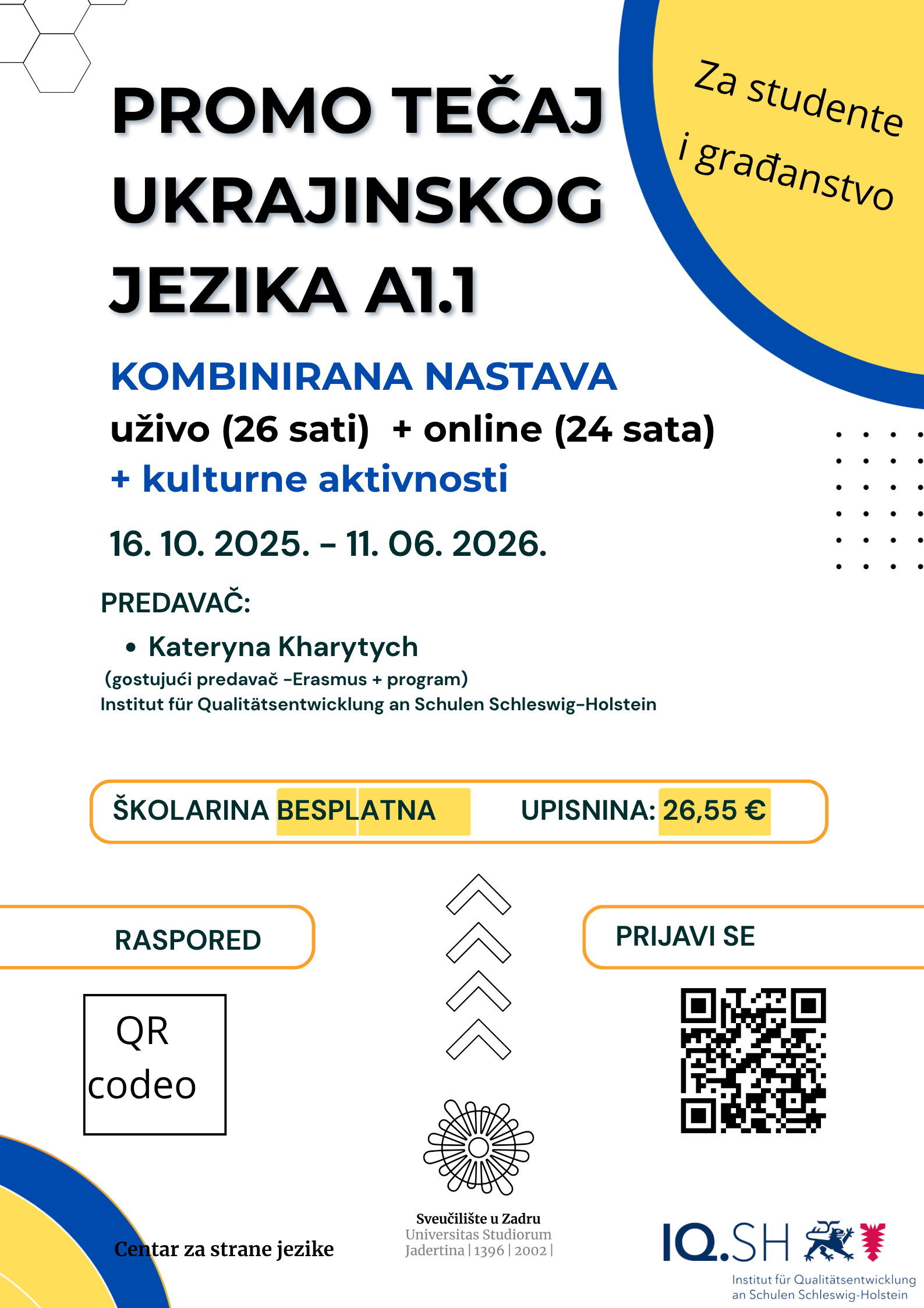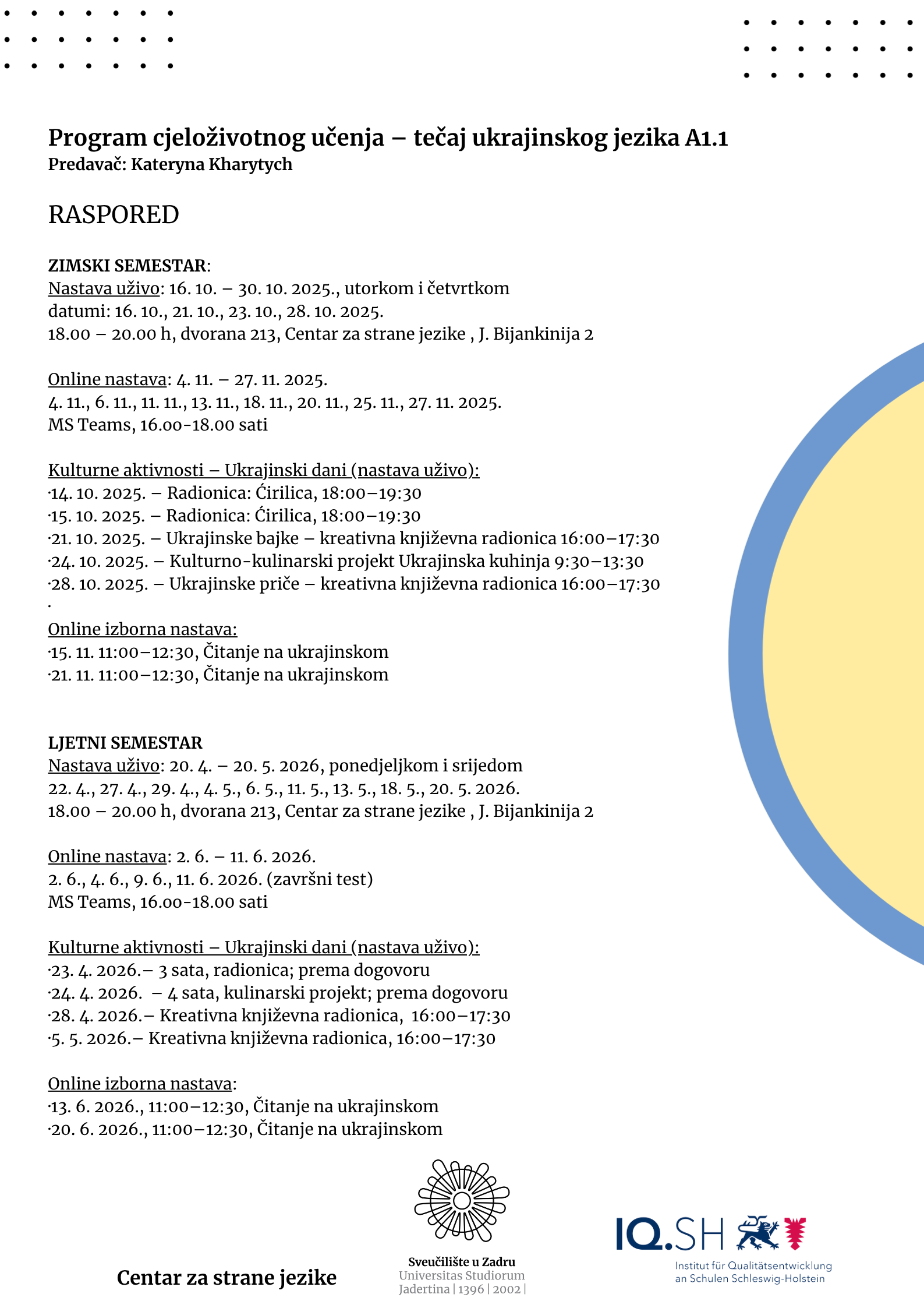 Nastava od kraja rujna 2025. do kraja siječnja 2026.